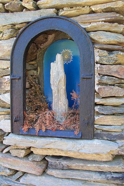 la statue de la Vierge est une pierre brute