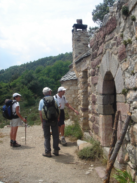 Chapelle Saint Etienne de Campilles (XIs) (abri accolé récemment au mur clocher) porte en marbre rose et en marbre rouge griotte des carrières de Villefranche.