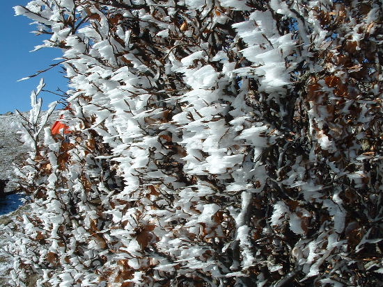 Aiguilles de glace dans des branches, effilées par la tramontane, sur les pentes du puig Neulos
