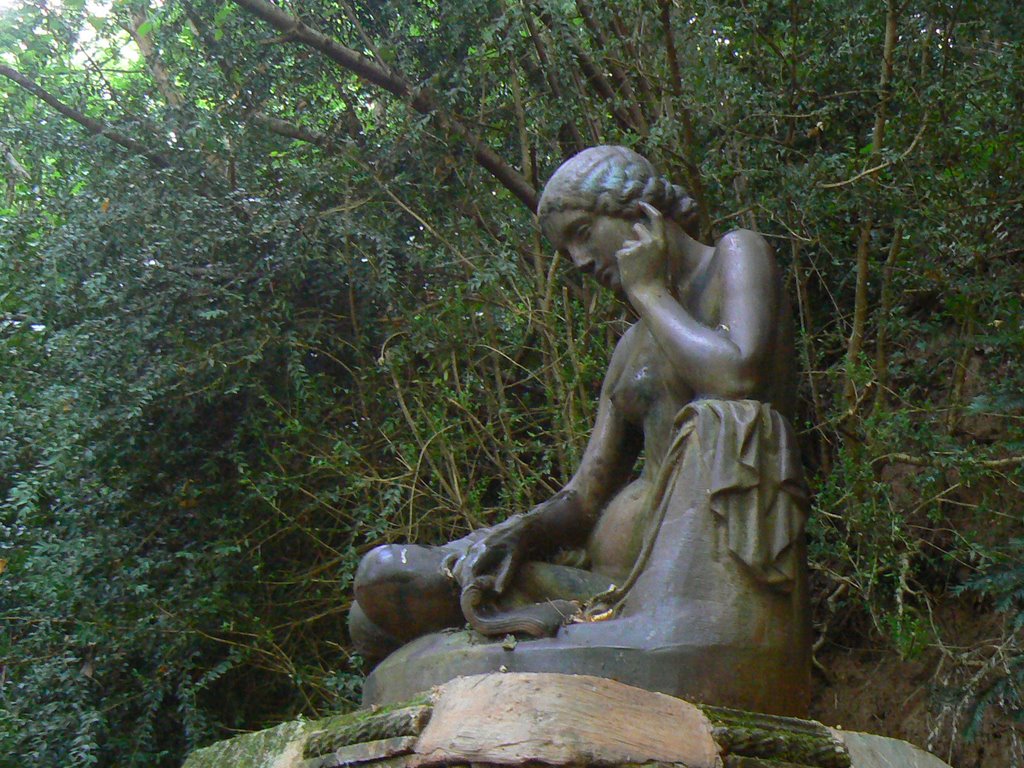Cliquez pour écouter Marthe lire Cette statue figure dans l'album n°2 de la société Anonyme des fonderies d'art du VAL d'OSNE consacré aux fontes d'art. Elle s'appelle "ELEGIE" le sculpteur est Georges Diebolt (Dijon 1816-Paris 1861) dont l'œuvre la plus connue fut le zouave du Pont de l'Alma à Paris. Elle est en fonte, ce qui lui donne sa couleur brune. Elle a du être coulée à la fin du 19ème siècle, Information due M. C. Michel de l'association : Les compagnons de l'histoire