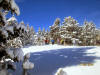 la journée que cela nécessitait une hospitalisation. Le ciel est bleu azur et le soleil règne sans partage. Une montée dans la forêt de pins majestueux, habillés de blanc qui scintillent sous les rayons généreux de l’astre de ce jour. La neige colle aux raquettes et rend la progression plus difficile. Dans ce paysage d’immenses forêts, dominé par le Pic Ginèvre (2382m) nous évoluons en colonne les yeux collés au profil de la trace. Le groupe longe les pistes de skis et les traverse souvent ; mais avec mille précautions. Un repas clôture cette première partie de la journée. Le soleil darde ses rayons, du coup les bras nus des marcheurs (euses) se multiplient !…Notre parcours s’effectue à quelques encablures du Roc de Querubi (1908 m) ; chemin faisant notre équipe sur le retour atteint le point final : Fontrabiouse où nous attend le minibus. distance= 12 km – dénivelé positif = 450 m - dénivelé négatif = 700 m – temps = 7 h (pauses comprises)