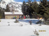 quatrième randonnée : mercredi 19 février 2014 9h15 le minibus charge les randonneurs pour une virée du côté de Sansa. La météo est favorable. Le soleil est l’un des participants de cette journée !… Arrivé dans le petit village de Sansa, (1414 m) après le col de Creu et Railleu, nous ne chaussons pas immédiatement les raquettes. Après une marche du groupe (19 randonneurs sous la conduite de Thierry) qui parvient au Pla de l’Orry (1608 m) et là, les raquettes aux pieds, montée jusqu’au refuge de l’Estagnols (1792m) C’est l’heure du