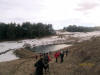 parviennent au lac totalement gelé. Pause repas sur la berge …instable…