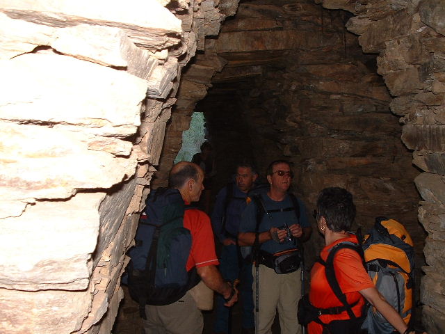 L'intérieur d'une grande bergerie en pierres