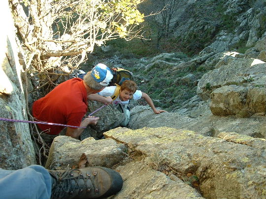Avec une corde en assurance, par précaution