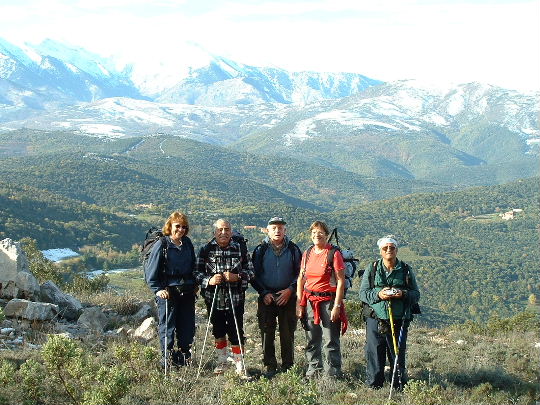 Le groupe de randonneurs sur fond de Canigou enneigé