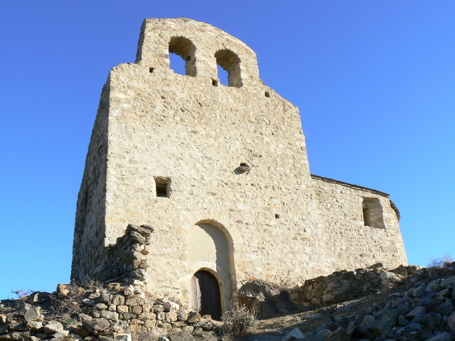 Eglise Saint Etienne (Sant Esteve) restaurée, au dessus du hameau de Comes (Coma).