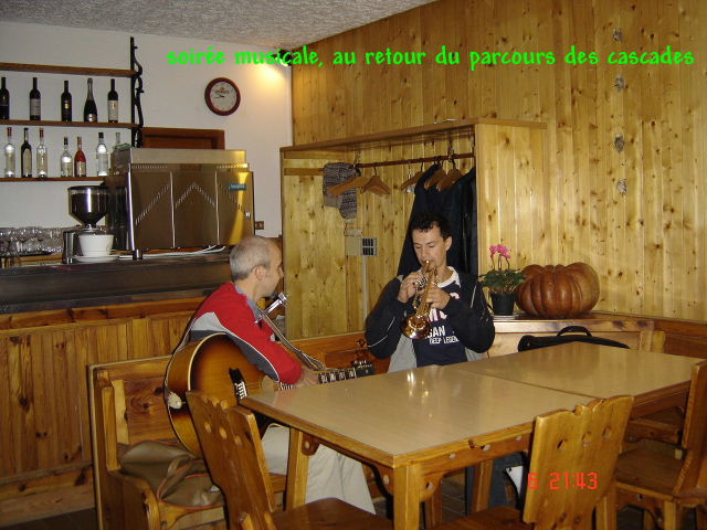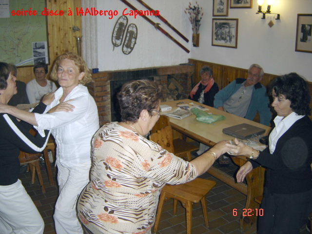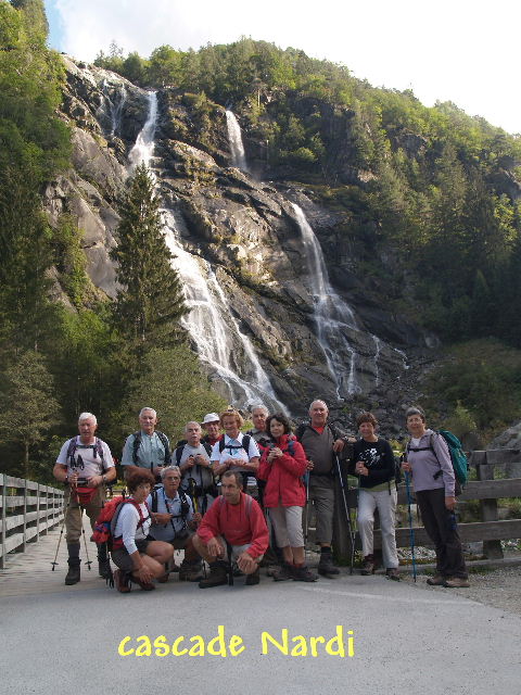 est engagé avec entrain. Dénivelé : 700 m _ Temps de parcours : 7 heures _ distance : 10 km 5ème randonnée : Ce jeudi 06 septembre quelques membres du groupe partent prospecter en touristes les environs du VAL RENDENA, tandis qu’une randonnée rassemble l’autre partie qui entame le parcours des cascades. Le regroupement s’effectue à Madonna di Campiglio à l’office de Tourisme d’où s’effectue le départ (1572m). Les marcheurs empruntent le sentier « Giro di Camiglio », suivi du « Giro delle cascate » Au passage nous rencontrons les ruines « Malga Vallesinella di Sotto », (1513m) lieu de départ de plusieurs itinéraires. La visite des chutes débute par les Cascades ALTE , suivie de Di Mezzo et Di Sotto . A l’issue de cette balade nous savions ce qu’était une cascade !…. Dénivelé : 300 m _ Temps de parcours : 5 heures _ distance : 13 km Après le dîner un duo de musiciens, trompettiste et guitariste (frère de Daniéla) nous a offert une aubade qui a sollicité, de façon agréable nos jambes. Les randonneurs sont des passionnés des sentier, mais aussi de la piste…. de danse