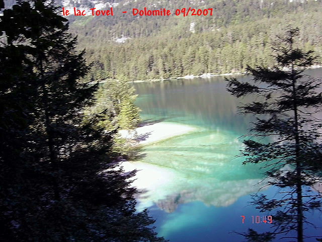 nous transporte vers les îles du Pacifique…En effet ce lac est plus près du lagon, par sa couleur vert émeraude, ses plages blanches , bordées - non pas - de palmiers mais de majestueux sapins