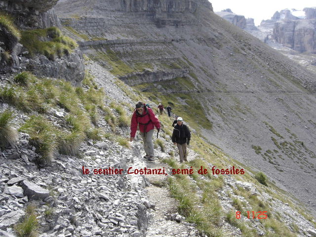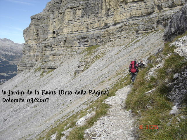 (2263 m) et de là, le groupe s’élance sur un étroit sentier caillouteux et même vertigineux pour rejoindre le jardin de la Reine (Orto della Régina) Point de jardin tel que nous l’entendons, mais caillasse sur caillasse… Ce sentier dénommé Costanzi (n° 336)