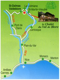 St Dalmas Valdeblore 1300m aux portes du Parc du Mercantour. ACCES : Autoroute jusqu’à sortie la « Nice St Isidore ». Prendre la RN202 en direction de Digne / Grenoble. Vous avez ensuite le choix pour monter à St