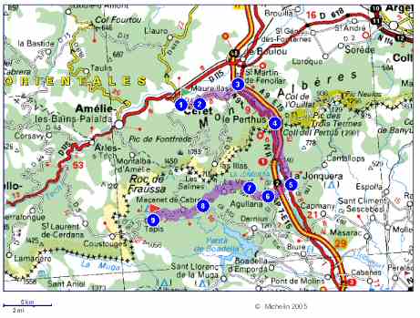 Depuis Céret on peut passer passer par : Amélie, Arles, St Laurent de Cerdans et Coustouges. Les